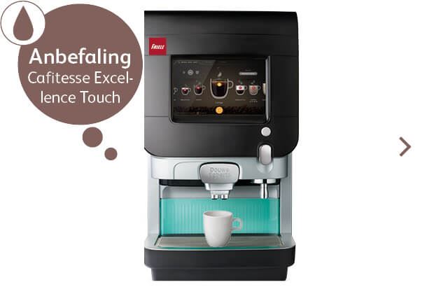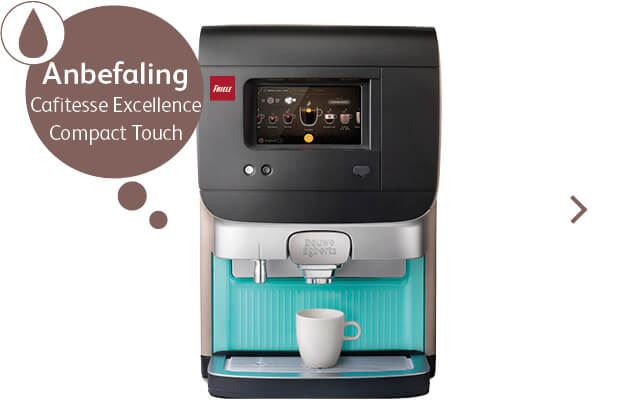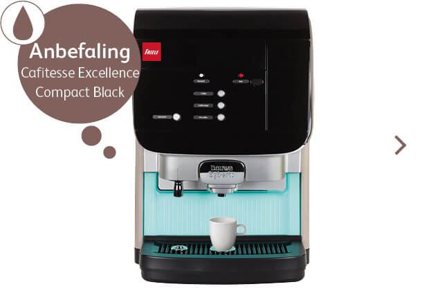 Cafitesse Excellence Compact er en liten-men-stor maskin med plass til kaffe, melk og sjokoladepulver.