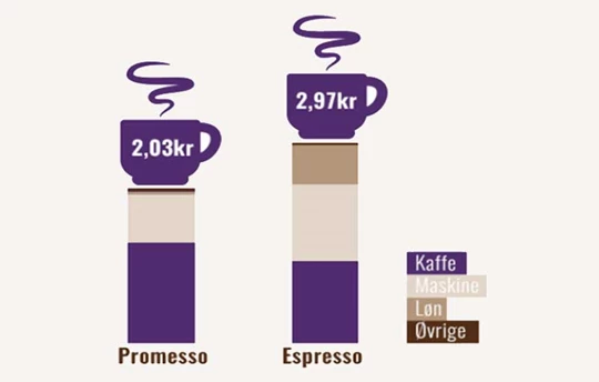 Det er betydelige prisforskjeller i markedets kaffeløsninger, både for en helautomatisk espressomaskin, kapselkaffeløsninger og et moderne alternativ som Promesso. Men dessverre følger ikke kvaliteten alltid prisen.