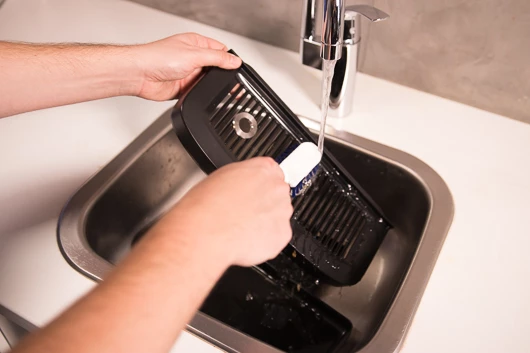 Vi anbefaler at du rengjør din Cafitesse Excellence Compact Black daglig i tillegg til den ukentlige rengjøringen. Dette innebærer å rengjøre utsiden og tømme dryppbrettet.