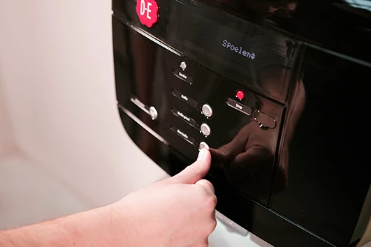 Når du har plassert oppsamlingsbrettet, kan du trykke på "Enter". Kaffemaskinen vil starte skyllingen. Dette tar ikke mer enn 5 minutter.