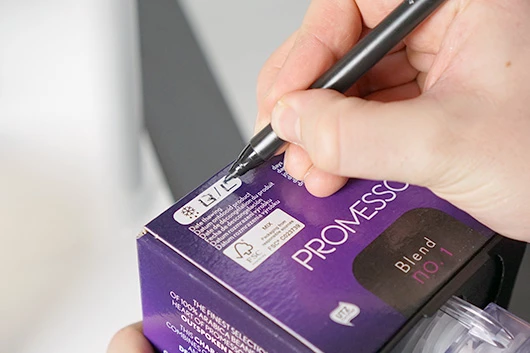 Skriv dagens dato på den nye emballasjen. I den andre boksen, skriv ned utløpsdatoen. For melken er dette 7 dager, for kaffen er det 21 dager.