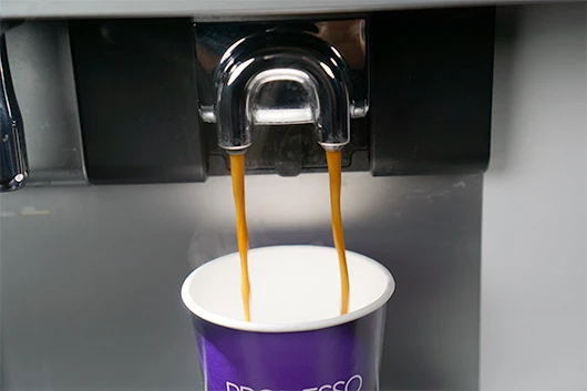 Hvis du plasserer en ny ingrediens, bør du alltid skylle kaffemaskinen. Plasser den medfølgende beholderen under utleveringspunktet.