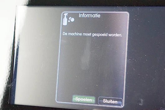 Trykk på symbolet for å starte skyllingen. Trykk deretter på start for å skylle rørene. Dette vil ta omtrent 2 minutter. Merk: ikke berør vannet, det er veldig varmt!